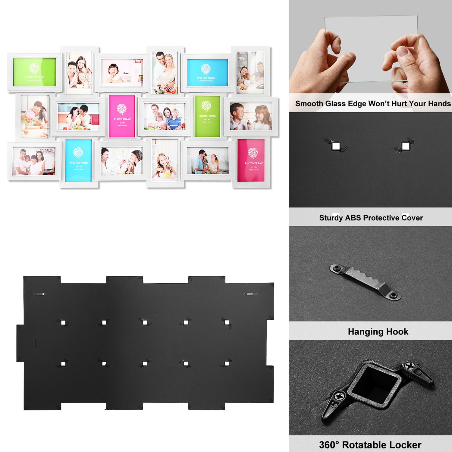 *Multi-Photo Display*:Available in types of 12 openings and 18 openings with different colors(white and black),the picture frame will satisfy all your needs. Designed with horizontal and vertical orientations,you can layout freely and make it in harmony with your home decor. In addition,the picture frames adopts the glass protection display,which clearly show your pictures and safely protect them.